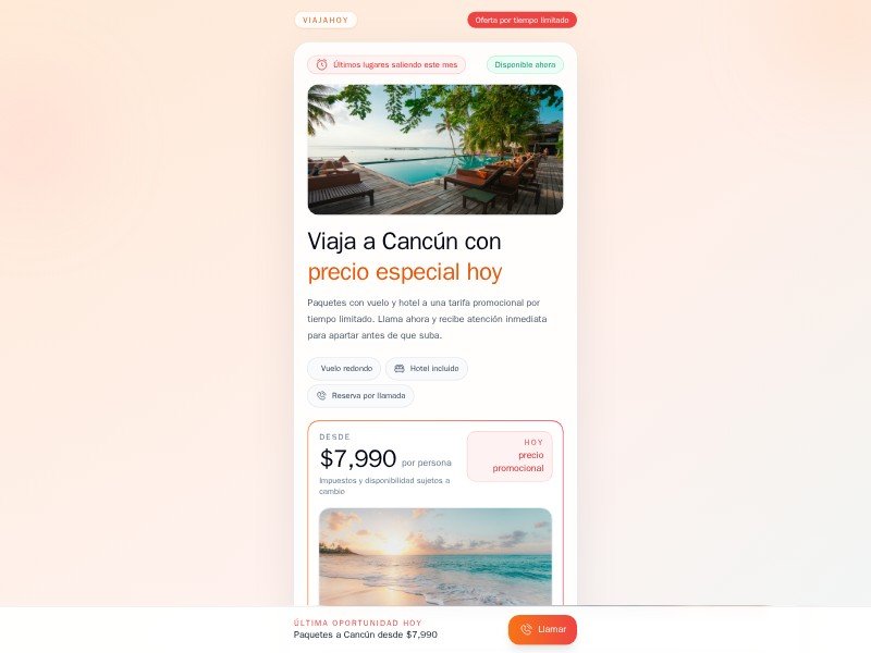 Primary use case: travel agencies, tour operators, and deal marketers promoting seasonal packages such as Cancún getaways.