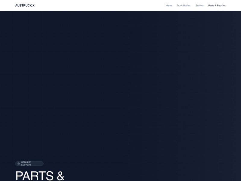 Austruck X Parts & Repairs Landing Page Template is a clean, industrial-style layout for showcasing truck body and trailer parts, repairs, and compliance services.