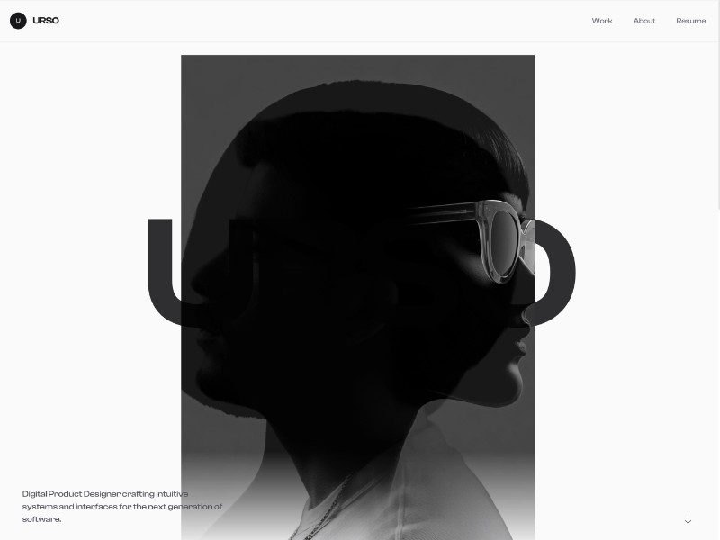 A sleek product designer portfolio template for showcasing case studies, selected work, and social links with a bold URSO-inspired aesthetic.