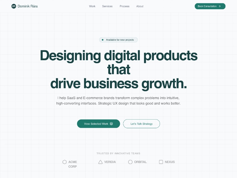 Use this template to quickly launch a professional designer portfolio that highlights your process, results, and makes it easy for clients to book consultations.
