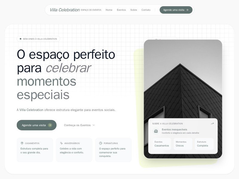 Um modelo de página de destino sofisticado para espaços de eventos, ideal para apresentar casamentos, festas e eventos corporativos, impulsionando reservas e consultas de clientes.