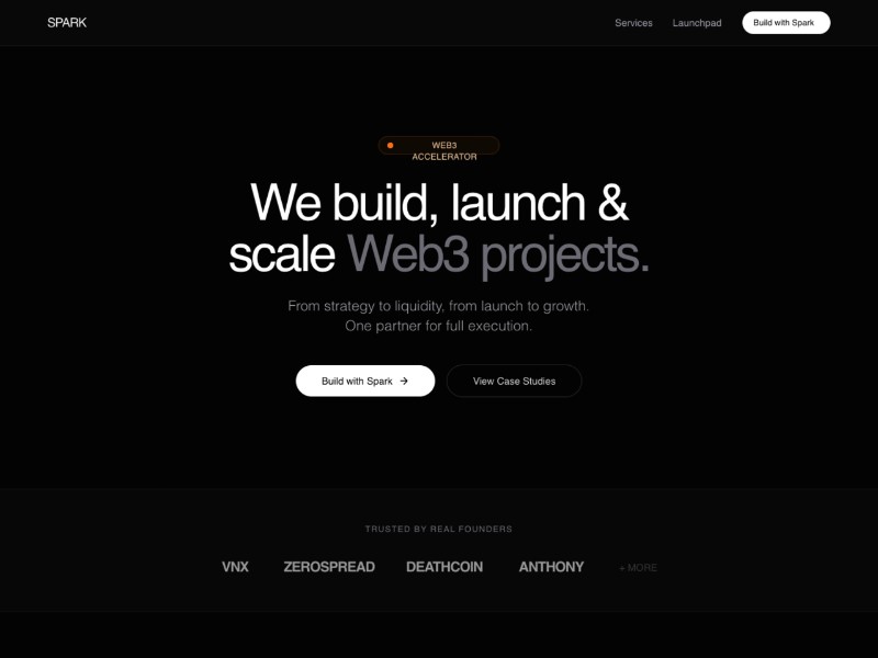 Spark Web3 Accelerator Landing Page Template delivers a high-impact dark UI for launchpads, accelerators, and Web3 agencies.
