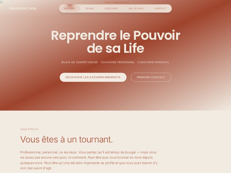 This premium landing page template is meticulously crafted for coaches, consultants, and HR professionals. It features a warm, refined color palette (#F1EBE1 and #AF4B31) and a smooth, modern user experience with a custom floating 'tube light' navigation bar.