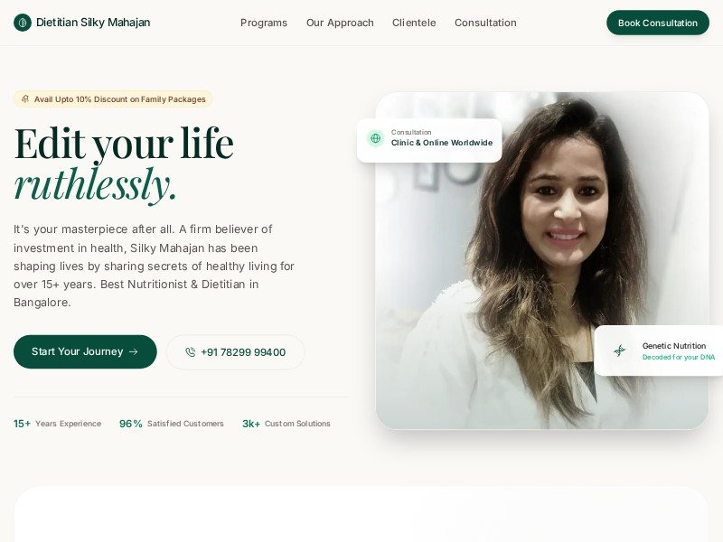 A high-end, aesthetic medical and nutrition landing page template designed for dietitians, wellness clinics, and health professionals to book consultations.